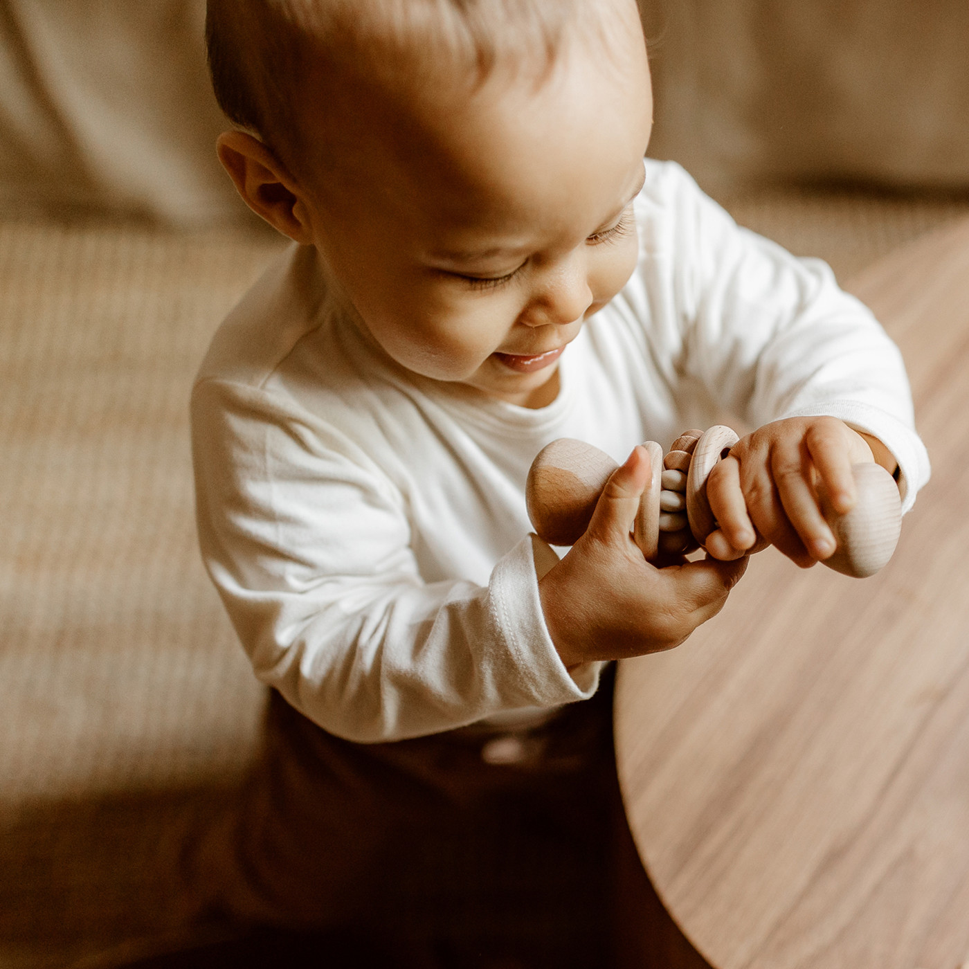 Composé de bois de hêtre et de silicone alimentaire, le hochet “Cosmo II” est un jouet d’éveil permettant à votre bébé de développer la motricité fine ainsi que la vision. Ses matériaux et sa forme lui permettent également d’être un précieux allié pour soulager bébé lors de la poussée dentaire.